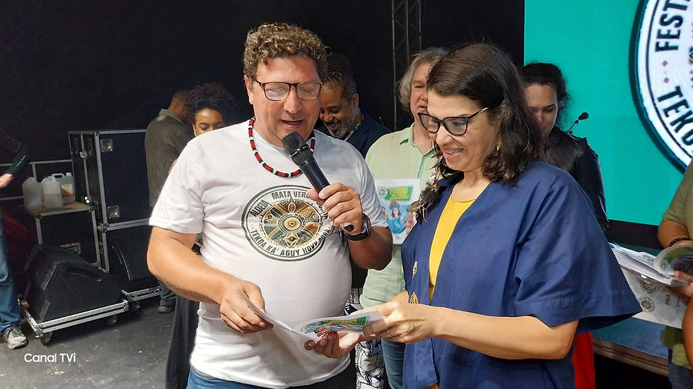 Cantora indígena integrante do projeto Indistock. O evento é aberto ao público e segue até domingo (10), com ampla programação cultural. A Festa Guarani reforça o compromisso com a valorização dos povos indígenas e seu protagonismo na cultura brasileira contemporânea. Por: Vera Lúcia Imagens: Beto Vídeo Matéria na íntegra no Site: www. tvitaipuacu.com.br
